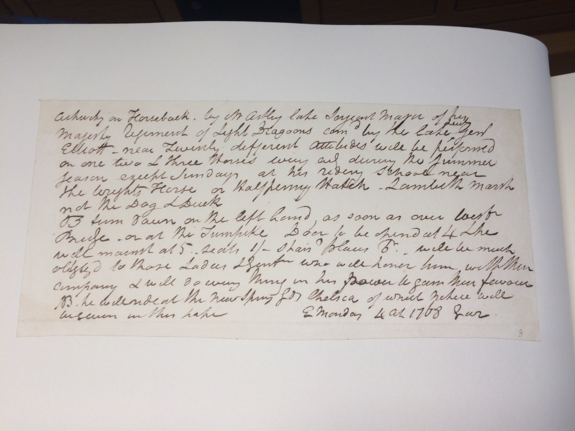 NB. he will ride at the New Spring Gds [Gardens] Chelsea of which notice will